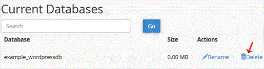 3. En Bases de datos actuales, puede ver una lista de todas sus bases de datos. Localice la base de datos que desea eliminar y haga clic en Eliminar.